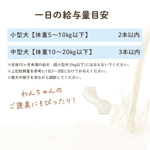 - 給与量の目安を守ること:小型犬は2本以内、中型犬は3本以内を基本に、過剰摂取を防ぎましょう。
