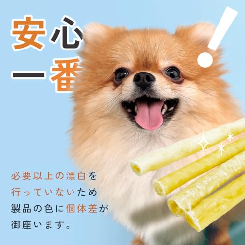 日本国内で製造されており、厳しい品質管理のもとで仕上げられているため、安心して与えられる点が大きなメリットです。必要以上の漂白をせず、色味にバラつきがあるものの品質には問題がありません。添加物を排除することで、敏感な愛犬の体への負担を抑え、長期間の使用も安心です。
