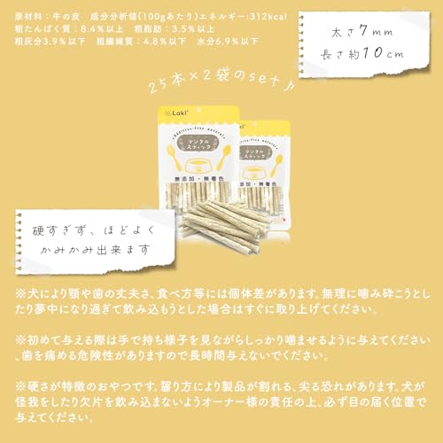 Lakiラキ無添加牛皮デンタルガム|25本×2袋で歯磨きケア