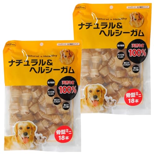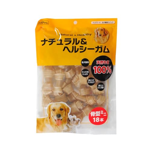ペットプロ ナチュラル&ヘルシーガム 骨型ミニは、小型犬や歯の小さい愛犬に特におすすめのデンタルケアガムです。天然牛皮を使っているため、硬すぎず噛みやすいのが特徴。ストレス発散と歯垢除去が期待でき、日々のオーラルケアの補助に最適です。