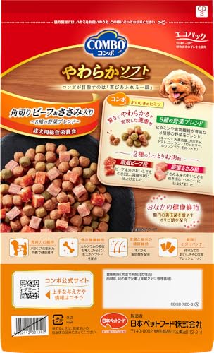 コンボ ドッグフード やわらかソフト 角切りビーフ・ささみ 野菜ブレンド 720g 【半生タイプ】 【たっぷりお肉粒】 【国産】 【小分け包装】 最後 画像