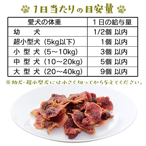 ですが、素材は100%チキン砂肝で農林水産省認定の安全基準をクリアしています。しかし、犬によっては肉の種類にアレルギーを持つこともあり、初めて与える際は少量から様子を見てください。続いて、