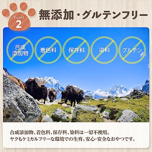 本商品はヒマラヤ産のヤクミルクを使用し、人工添加物を一切使わない100%ナチュラルな製法で作られています。必須アミノ酸を豊富に含む自然食品のため、多くの犬に安全とされています。ただし、硬さがあるため、与える時間(10~15分程度)を守り、飼い主様が目を離さず管理することが重要です。初めての使用時は特に犬の噛み方や反応をよく観察してください。