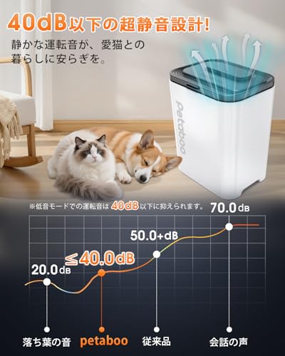 フタの開閉が1秒でスムーズにでき、付属のスプーンで計量もしやすい設計。さらに40dBの静音設計で、飼育環境を乱さずペットにも安心です。お手入れも簡単にでき、衛生管理を重視する方に向いています。