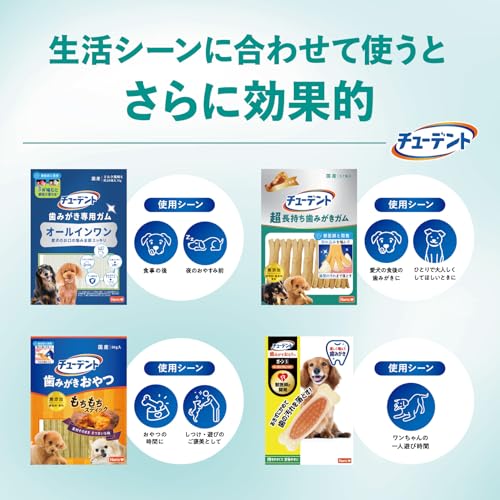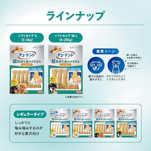 チューデント 超長持ち歯みがきガム ソフトタイプは、愛犬のデンタルケアを無理なく継続したい飼い主に適しています。特に小型から中型犬で、ひとり遊びさせたい時や食後のケアに最適です。ただし、硬すぎずソフトタイプのため、噛み応えにこだわる犬には物足りなさを感じる可能性もあります。