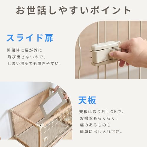 サークル下部のトレーは塩化ビニル樹脂製で掃除しやすい反面、天板の耐荷重は約5kgと低いため、重い物を置くことはできません。ペット用品を置く際は重量を考慮しないと破損リスクがあります。また、トレーの汚れはこまめに拭き取らないと衛生面で問題が生じる可能性もあります。