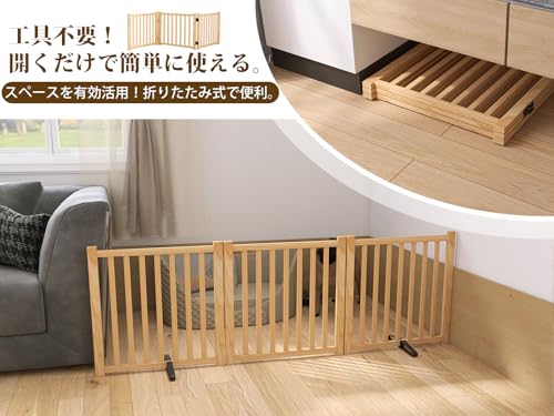 ペットゲート 木製犬ゲート YOCAN ペットフェンス 高さ58cm 長さ175cm 置くだけゲート折りたたみ 倒れない いぬ 柵 室内 犬脱走防止 飛び出し防止 小型犬 中型犬用 天然木 3枚パネル 最後 画像