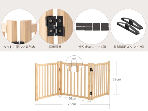 ペットゲート 木製犬ゲート YOCAN ペットフェンス 高さ58cm 長さ175cm 置くだけゲート折りたたみ 倒れない いぬ 柵 室内 犬脱走防止 飛び出し防止 小型犬 中型犬用 天然木 3枚パネル 1枚目 画像
