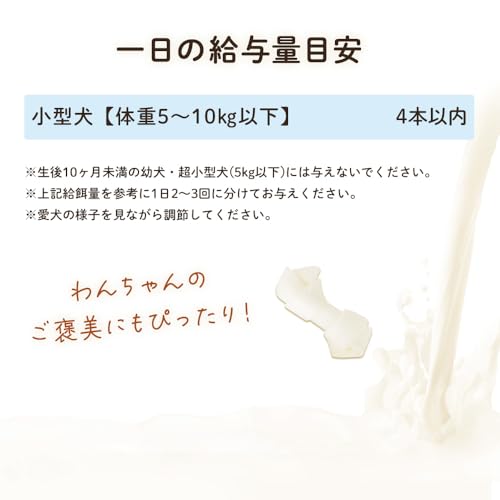 給与目安は小型犬5~10kgで1日4本以下ですが、これはあくまで目安です。犬の体調や食事状況によって量を調整し、誤飲防止やアレルギーの兆候に注意を払いながら利用することが必要です。定期的な観察で問題が起きなければ、健康的な間食として継続利用が見込めます。