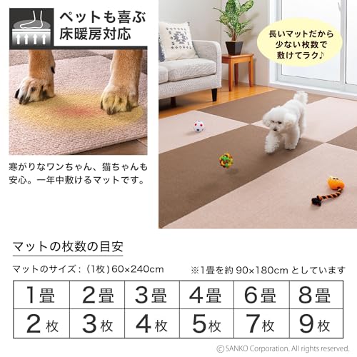 サンコー おくだけ吸着 獣医師推奨 ペット用 床保護マット 60×240cm ベージュ BE ロングマット 汚れ防止 【日本製 撥水 消臭 洗える ハサミでカット可】 KM-59 中間 画像