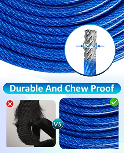 犬用トロリーラインのコアはワイヤーケーブルです。本製品が採用する「直径5mmのステンレス鋼ワイヤ」は、一般的に野外用途で十分な引張強度を確保できる太さです。ただし重要なのはワイヤ自体だけでなく、以下の点です。