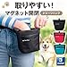 マグネット式の開閉は、ベルクロ(面ファスナー)やジッパーに比べて片手で素早く操作できる利点があります。トレーニング中に犬の注意を引き続けたいとき、片手で開け閉めして即座に報酬を与えられることは行動の強化において効果的です。ただし、マグネットは強い衝撃や倒れた際に一時的に開きやすい点があるため、散歩バッグを前方に向けて着用する、またはマグネットの位置が衣服で遮られないよう工夫することを推奨します。