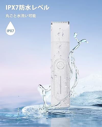 IPX7等級とは「一定の条件下(水深1m、30分)で浸漬しても有害な影響がない」レベルを指します。家庭用ペットバリカンでIPX7を謳っている製品は多くありませんから、このスペックは清掃性という面で大きな利点です。トリミング後の毛や皮脂、爪の削りかすを丸洗いで簡単に落とせることは、衛生管理上のメリットが大きい。特に皮膚トラブルを抱えた犬猫、頻繁に水場で遊ぶペット、湿度の高い季節に使う場合は、刃や本体を濡れたままにしておくことによる腐食や雑菌繁殖リスクを低減できます。