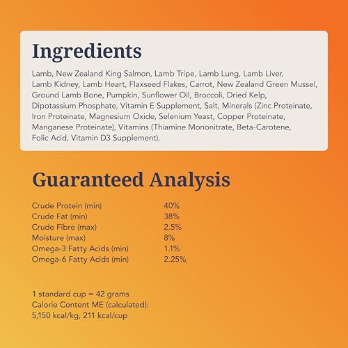 この商品は、香料や着色料を使わず、穀類・イモ類などのアレルギーリスクが高い成分を排除しています。ワンちゃんの消化器官に負担をかけにくい点や、ニュージーランドの厳しい獣医基準をクリアした原材料を使っていることが、安心感につながります。また、ラム肉は低コレステロールで脂肪燃焼サポートが期待でき、キングサーモンに含まれるアスタキサンチンは抗酸化作用で知られています。