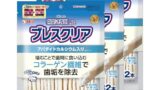 噛むことで歯の表面の汚れを取りやすくし、口臭軽減にも役立つとされています。硬さが程よく、デンタルケアに負担が少ないので、口内トラブルの予防を目的とした日々のおやつに適しています。ただし、非常に固い歯が弱い犬や乳歯期の幼犬にはやや硬すぎる場合があります。